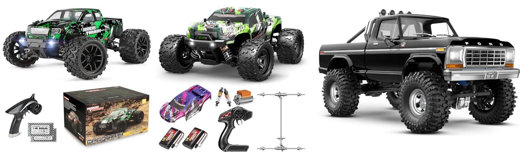 - Speed and Performance: If you want speed, look for a brushless motor and a LiPo battery. These trucks are often best on smoother surfaces.