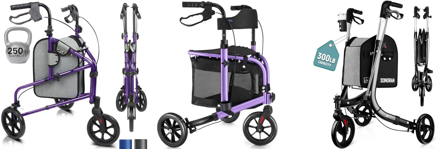 3. SONORAN 3 Wheel Walkers for Seniors – Foldable Rollator Walker with Cane Hold and Cup Holder