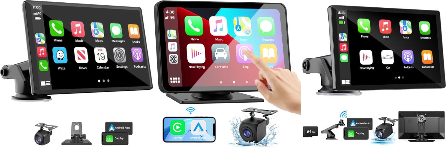 5. Portable Newest Wireless Apple CarPlay and Android Auto Screen for Car