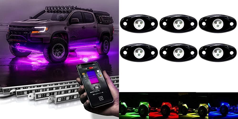 OPP ULITE RGB Rock Lights 6Pods, Multicolor Neon Accent Underglow Lighting Kit, APP Control Music Mode for Jeep Offroad Pickup Trucks UTV SUV Motorcycle, Waterproof Led Exterior Light
