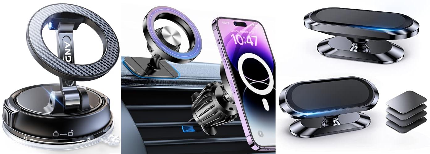 These magnetic car phone holders offer a simple and effective solution for hands-free driving. They provide a secure grip and a clear view, making them a great addition to any car.