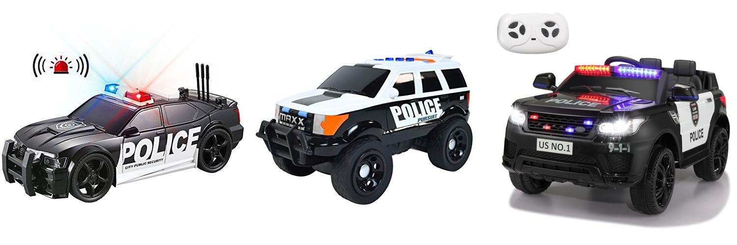 - The police car has cool LED flashing lights and electronic sounds. It makes three different realistic noises!