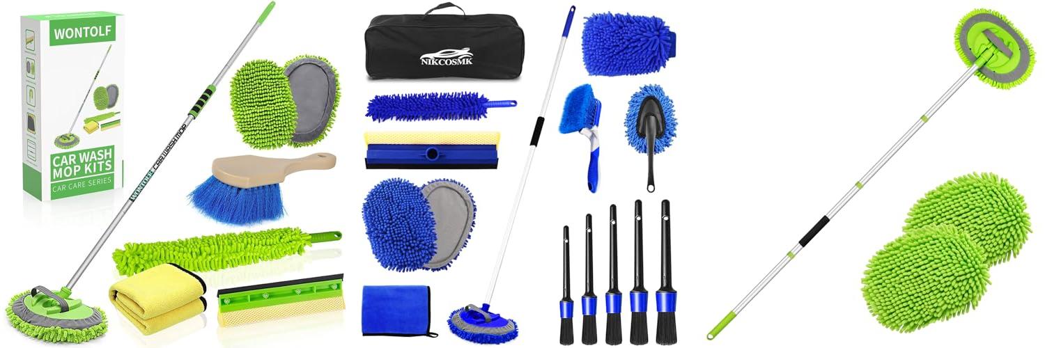 1. Wontolf 62” Car Wash Brush with Long Handle Chenille Microfiber Car Wash Mop Mitt Car Cleaning Kit Windshield Window Squeegee Car Duster Microfiber Towels Wheel Tire Brush for Cars RV Truck Boat