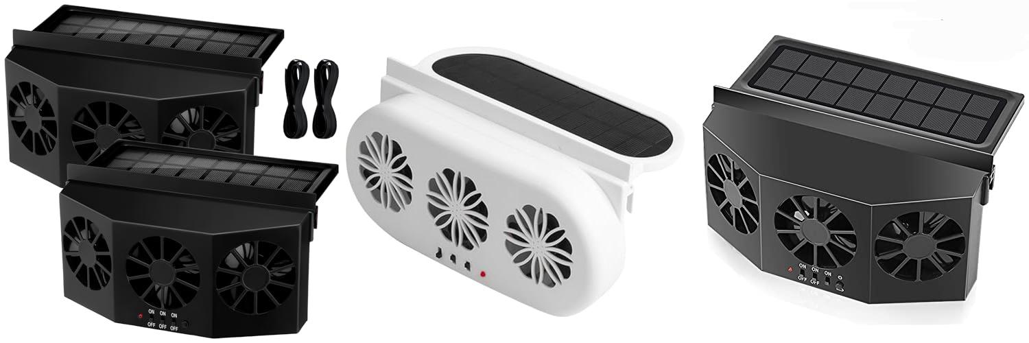 1. Tujoe 2 Pack Solar Powered Car Exhaust Fan 3 Fans Car Window 4500 RPM Air Vent Radiator Solar Energy Cooling Vent Exhaust for General Types(Solar 3 Fans