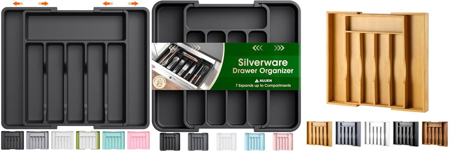 2. AUJEN Silverware Organizer – Expandable Kitchen Drawer Organizer