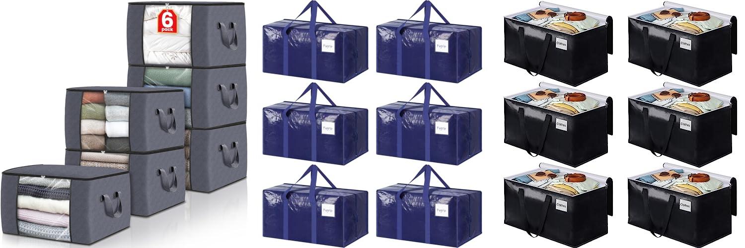 Need to move or store things? The BlissTotes Large Moving Bags are ready. This 6-pack of heavy-duty storage bags helps you. Each bag holds a lot and can carry up to 50 pounds. They have strong zippers and handles. These bags are great for moving, storing clothes, or going to college. They are easy to use and save space when you don’t need them.