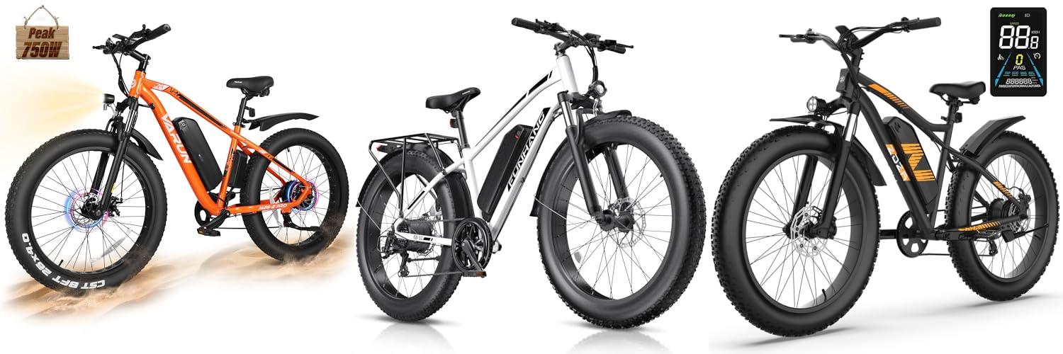 1. VARUN E Bikes for Men – Peak 750W Ebikes for Adults – Fat Tire Electric Bike Up to 25MPH 60+ Miles with 48V 13AH Removable Battery – 26″ Electric Mountain Bike Features 7-Speed