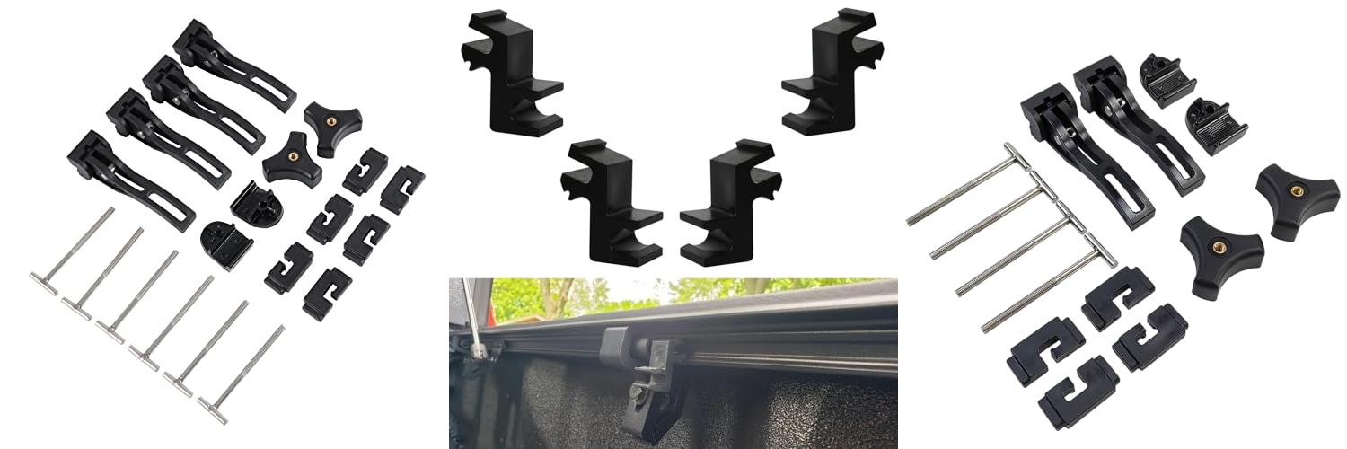 Is your truck bed cover acting up? Don’t let a loose tonneau cover leave your cargo exposed. This replacement installation accessory is designed to help you secure your tri-fold or quad-fold truck bed cover. It’s built for both hard folding and soft folding covers. This kit includes everything you need to get your cover back in place. It comes with front clamps, rear clamps, and T-bars (also known as T-bolts). These parts are made from strong plastic and aluminum. This means they will last a long time and stay steady.