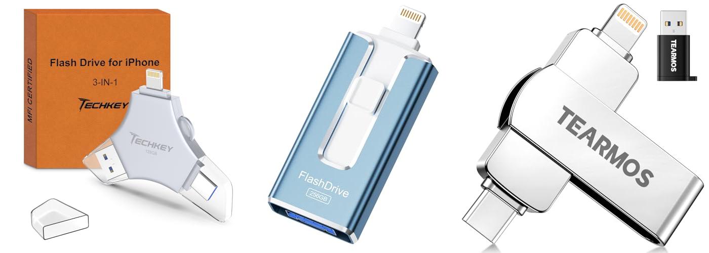 • Flash Drives: These plug directly into your iPhone or computer.