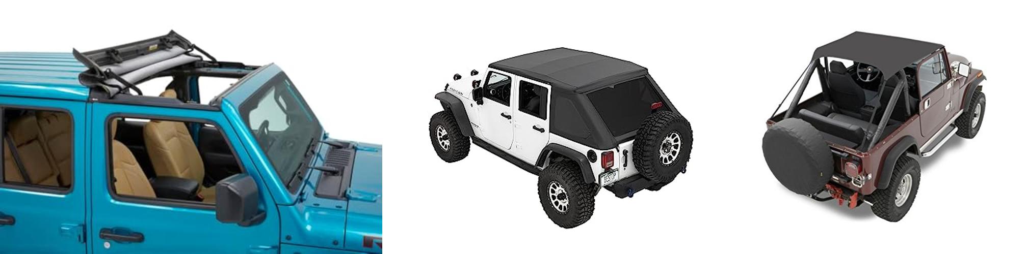 - All-Season Use: If you use your Jeep in all kinds of weather, a full, durable top like a sailcloth soft top or a hardtop will provide the best protection.