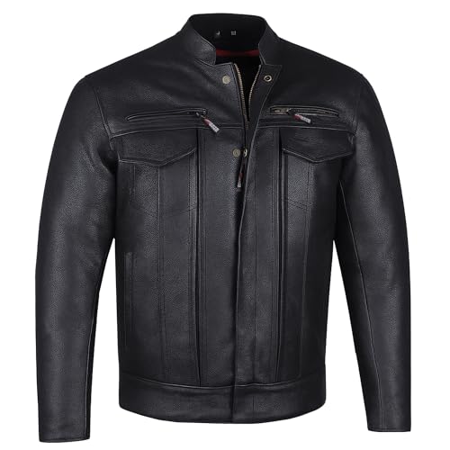 4. HWK Leather Motorcycle Jacket with Armor for Men