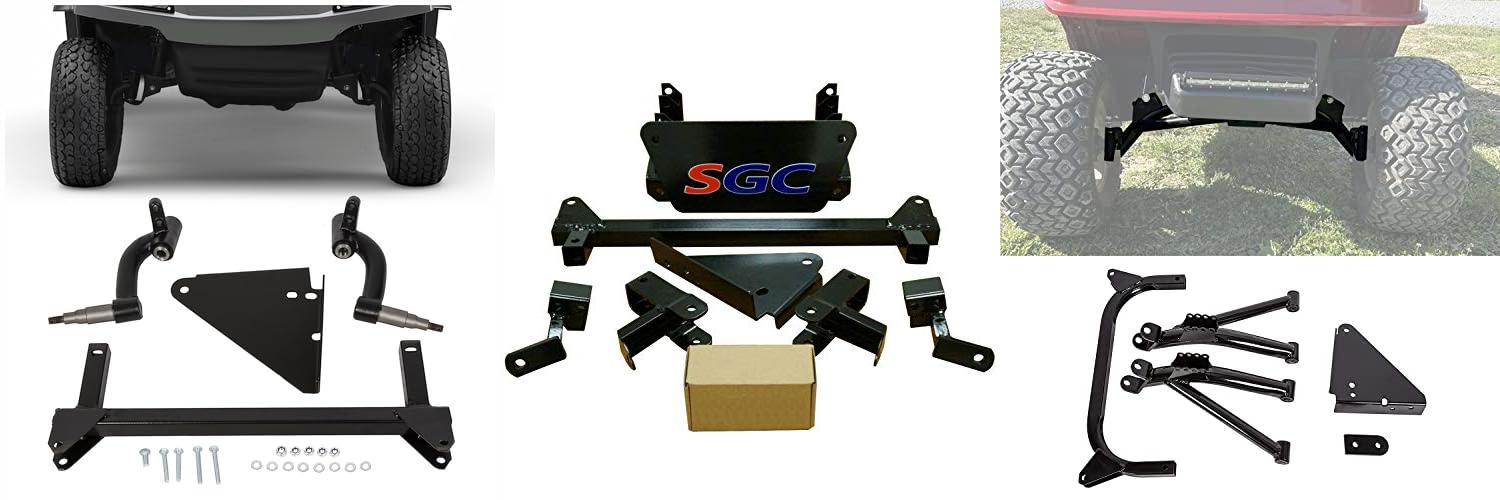 • Lift Height: How much higher will your cart sit? Most kits offer 3-6 inches of lift. A higher lift lets you use bigger tires. Bigger tires are good for off-road fun.