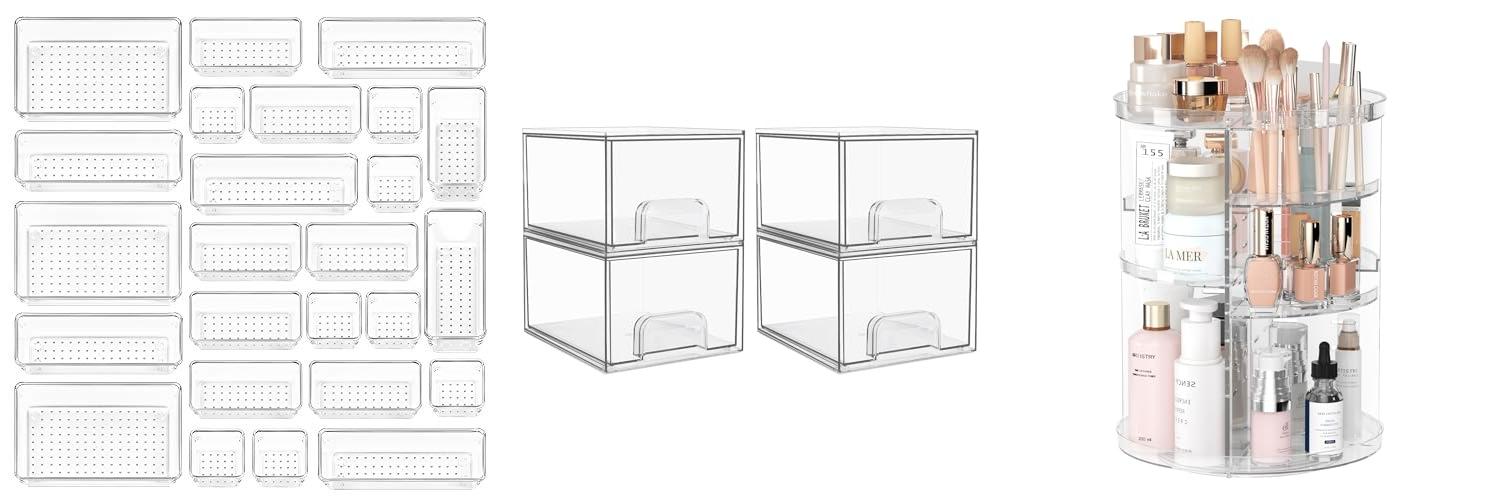 Do you want a tidy home? The Vtopmart 25 PCS Clear Plastic Drawer Organizers Set is here to help! This set gives you 25 clear plastic bins. They come in four different sizes. You can use them in your bathroom, kitchen, bedroom, or office. These bins help you organize everything from makeup to office supplies. Get ready to declutter your life!
