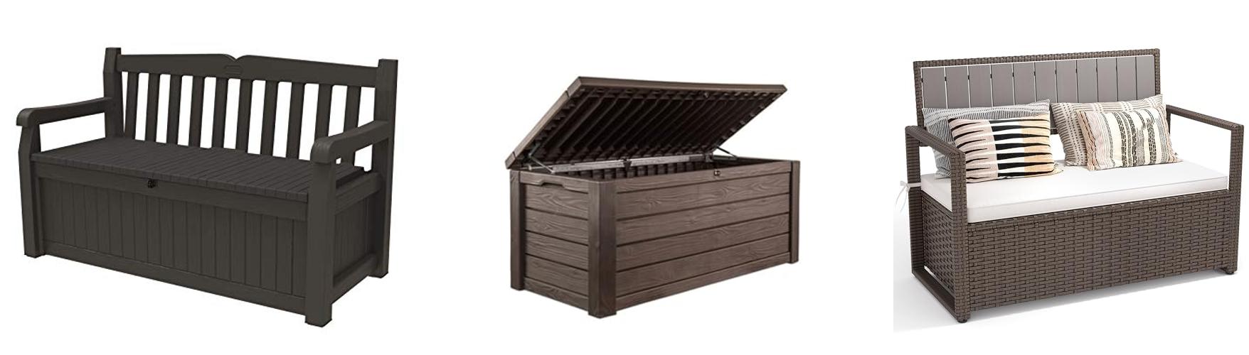 The Keter Solana bench is a good buy. It offers storage and seating. It is a good pick for your outdoor space.