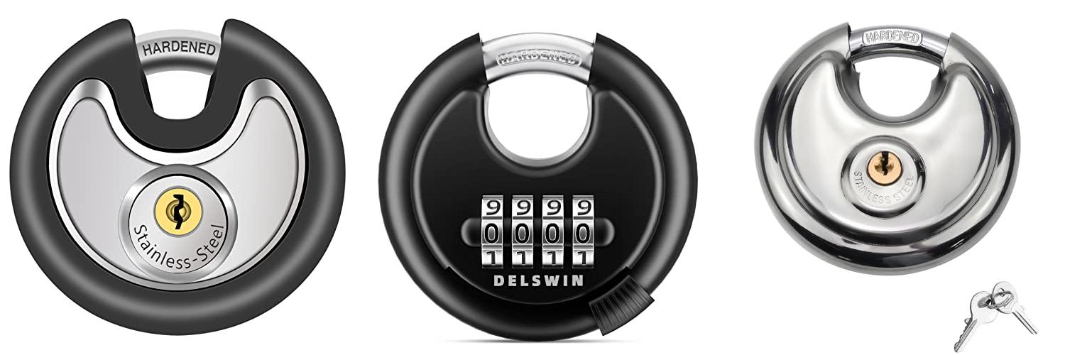 The CINCINNO Keyed Alike Discus Padlock is a tough lock. It is made of stainless steel. This 2-pack of locks is great for keeping your things safe. These disc locks are made for sheds, garages, and fences. They are also waterproof and strong.