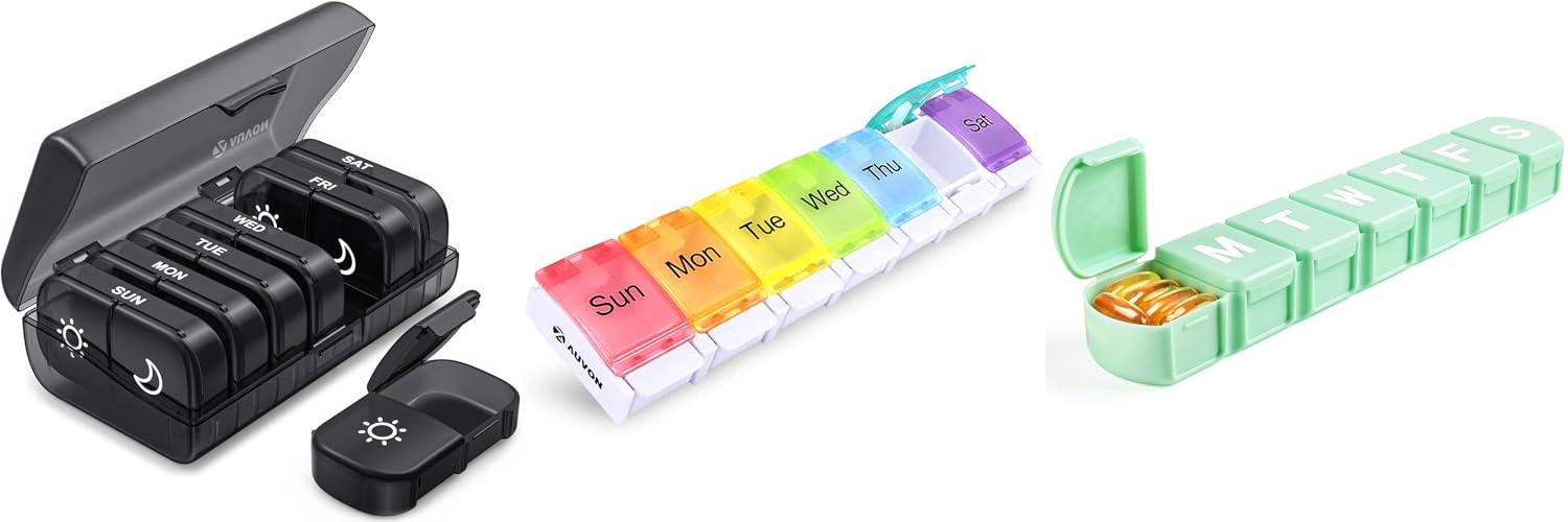 This AUVON pill organizer is a useful product. It helps you manage your pills with ease. This pill box is a good choice for anyone who needs to take daily medication.