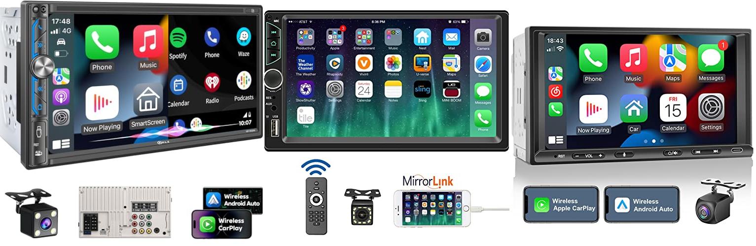 1. PLZ 7″ Wireless Double Din Car Stereo Apple Carplay Radio Screen for Car Audio Receivers