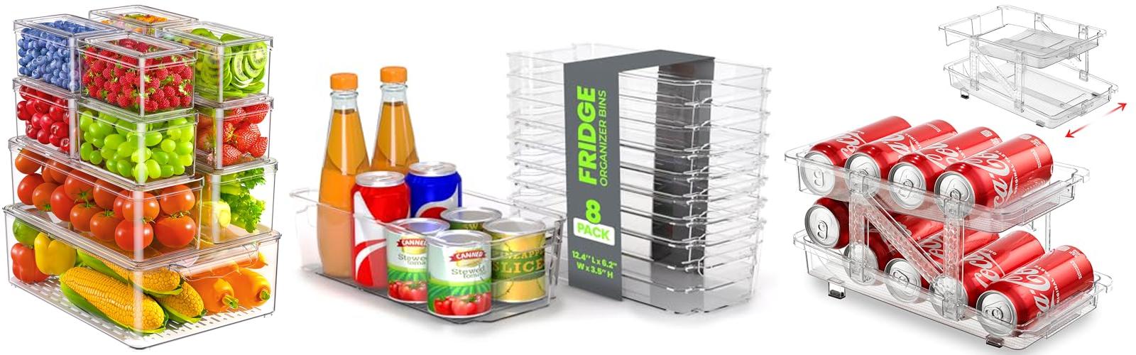 • Variety: Look for organizers with different shapes and sizes. You’ll need different ones for fruits, vegetables, and drinks.