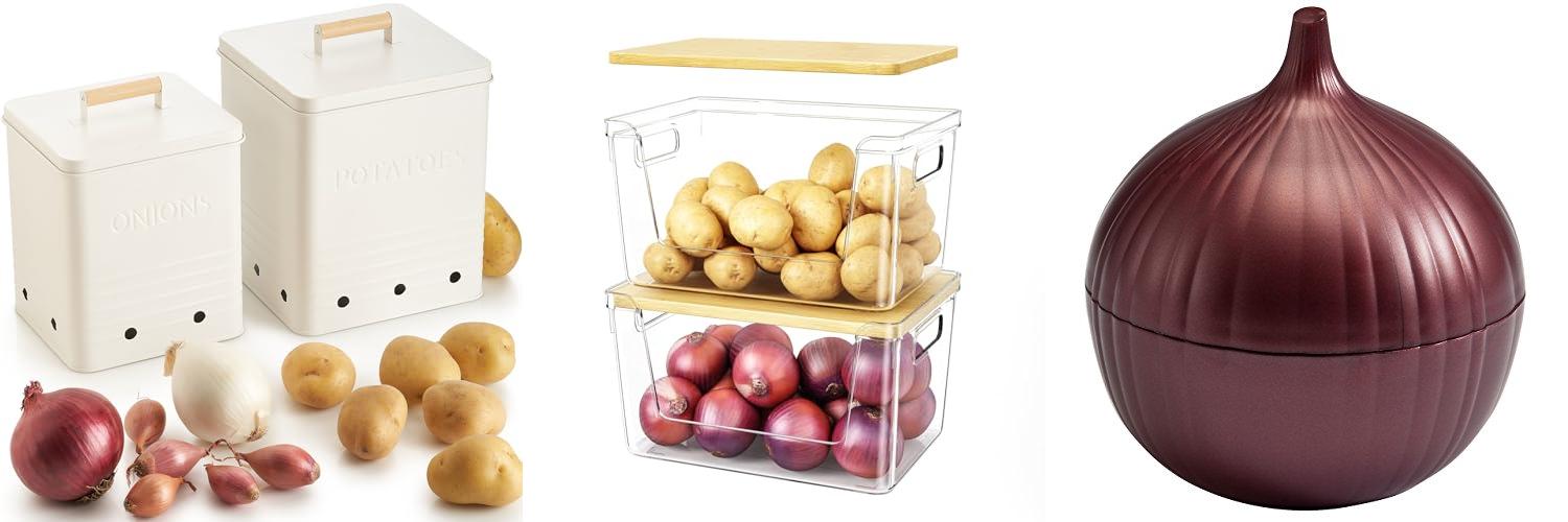 - The set includes two spacious containers for potatoes and onions.