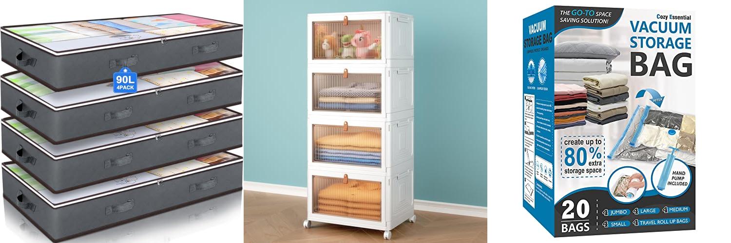 - Bedroom: Use under-bed storage for blankets and shoes. Get a tall dresser with drawers.