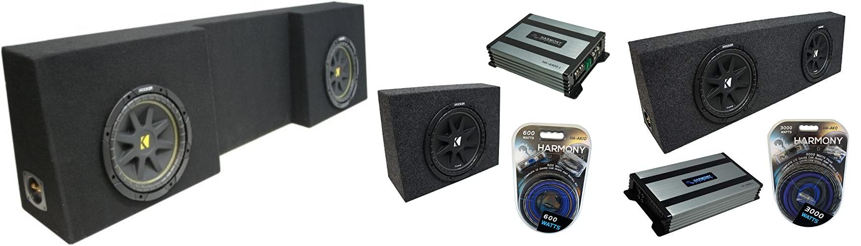 Get ready to feel the bass with the American Sound Connection bundle. This package brings you a Kicker C12 subwoofer, a specially designed truck sub box, and a powerful Harmony Audio amplifier. It’s built to fit perfectly in regular cab trucks, giving you a significant sound upgrade without taking up too much space. This is a great way to add some serious punch to your truck’s audio system.