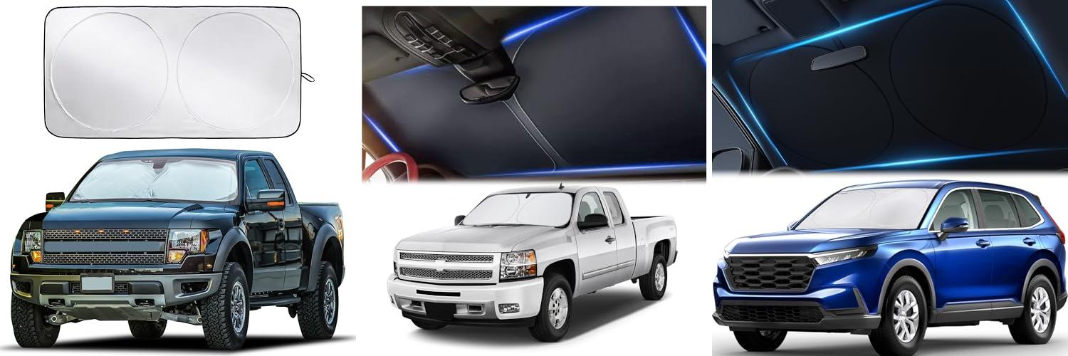 • Reflective Material: Look for shades that have a shiny, reflective side. This side bounces sunlight away, keeping your truck cooler.