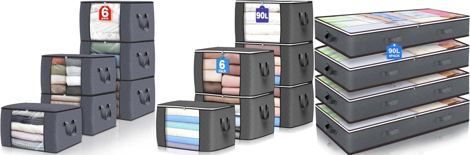 The Fab totes 6 Pack Clothes Storage is a simple way to organize your clothes and bedding. These foldable bags are made of thick, breathable fabric. You can use them in your bedroom, closet, or even a baby’s room. Each bag has a large 60L capacity. They have reinforced handles and a see-through window. This makes it easy to carry and see what’s inside.