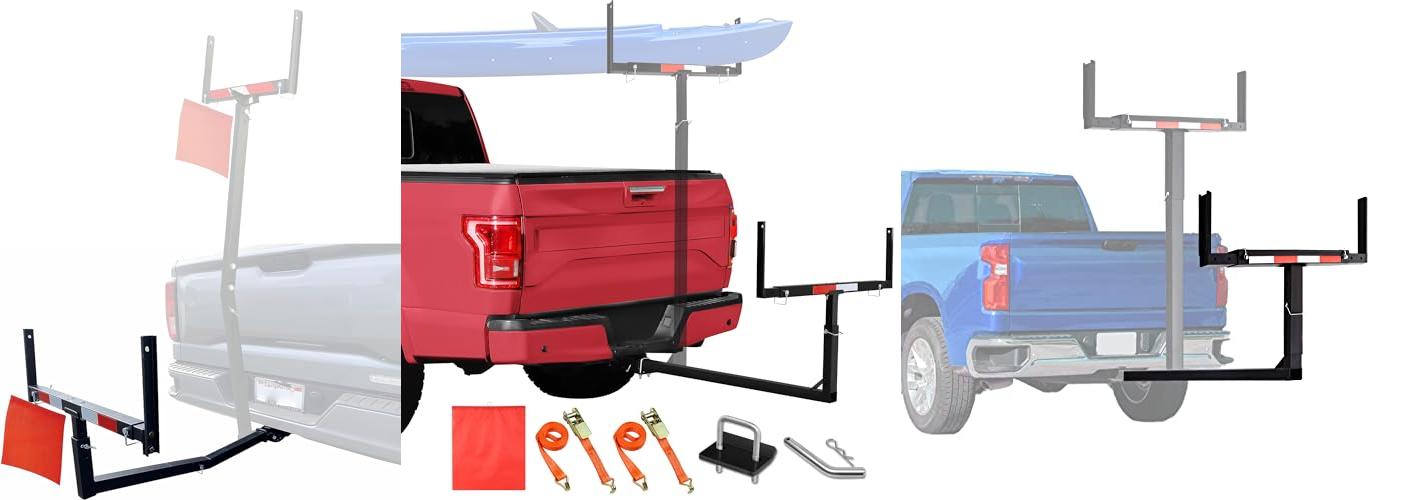 5. ECOTRIC Truck Bed Extender Pickup Truck Bed Hitch Mount Extension Rack SUV Lumber Ladder Canoe Boat Kayak Long Pipes w/Flag 750lbs Capacity