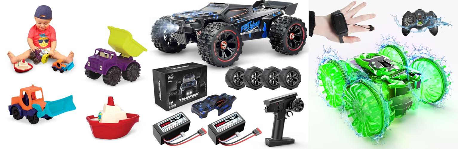 1. B. toys – 3 Mini Toy Cars Water & Sand Playset for Kids Beach Toys Includes 2 Trucks & 1 Boat Durable & Easy to Grab Perfect for Indoor/Outdoor Play