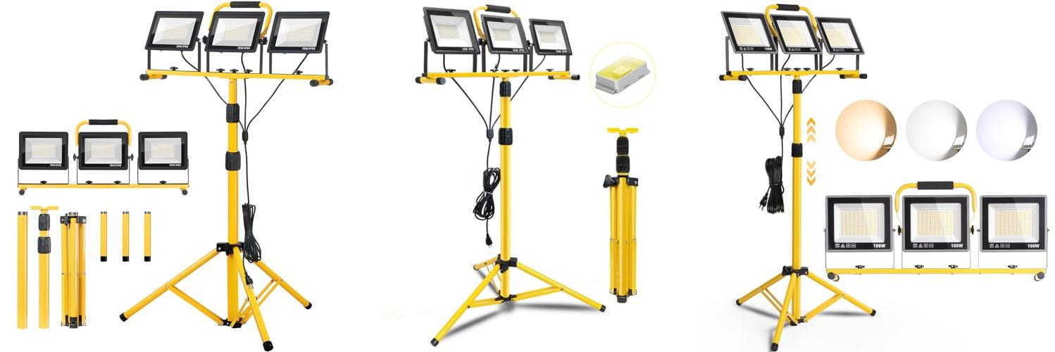 The Zetunlo 21000 Lumen LED Work Lights with Stand is a powerful lighting solution. This 3-head portable work light is perfect for any job. It has a long 16-foot cord and is IP66 waterproof. You can use it inside or outside. This work light is great for job sites, workshops, garages, and construction areas.